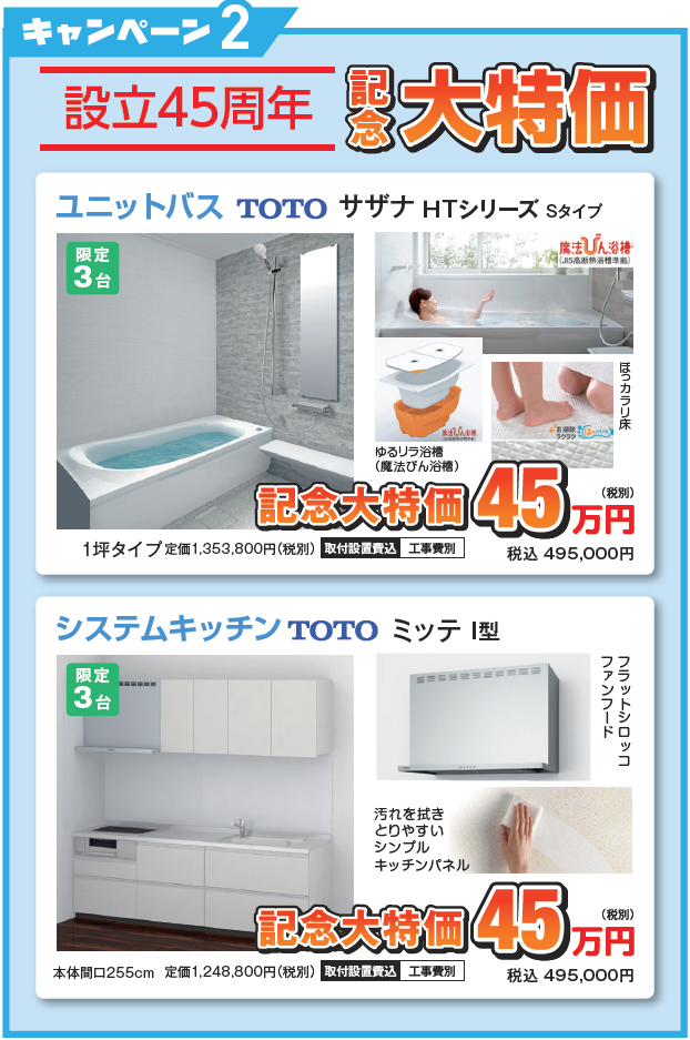 水まわり機器、給湯器はイベント特別価格として大特価で取り揃えております。