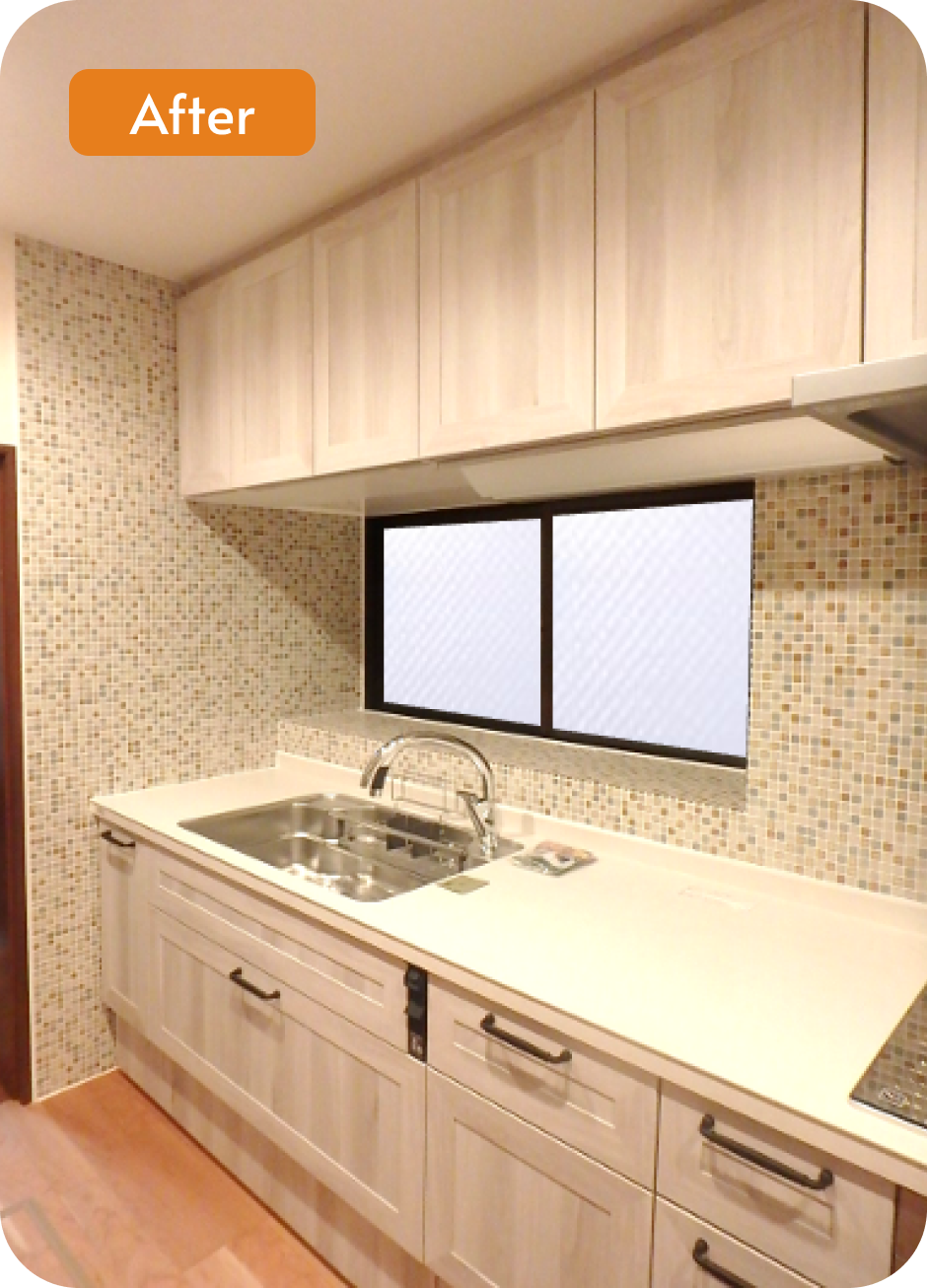 一番のこだわりはキッチンのモザイクタイル。