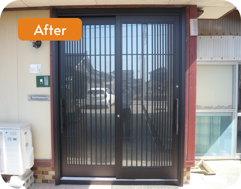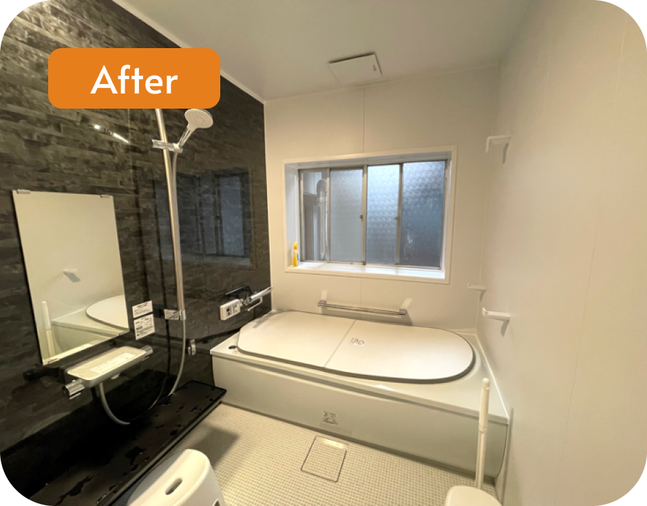 在来浴槽からユニットバスへの入替えと引き違い玄関戸の入替えも行いました。