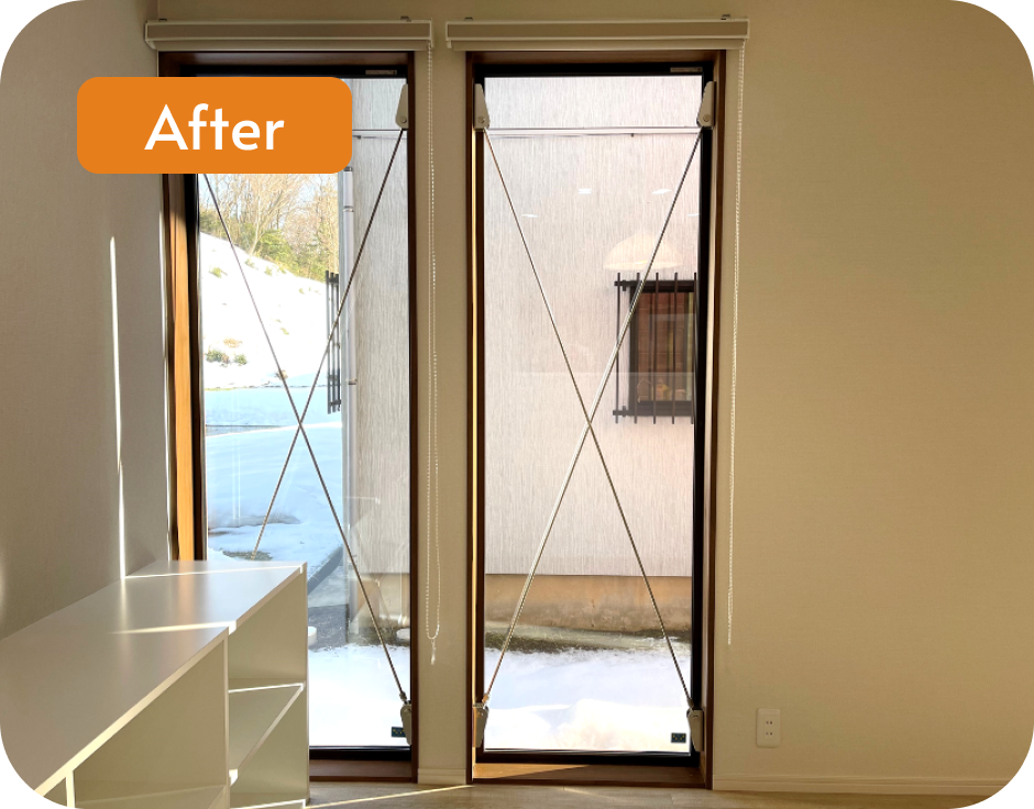 薄暗かったキッチンを明るいダイニングにするため、縦長の窓を3つ新設しました。構造材があるところに窓を設けるため、ブレースで耐震性を確保しました。