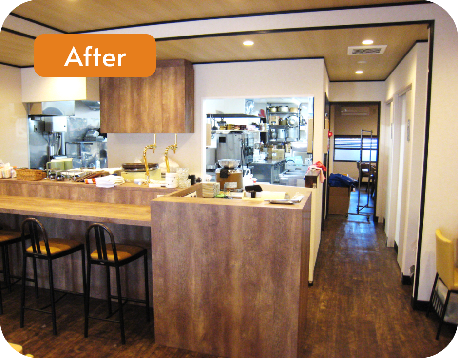 床、天井、カウンターと木目調で揃え家具も新調し、温かみのある店内へと生まれ変わりました。