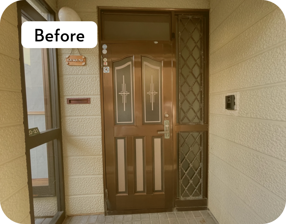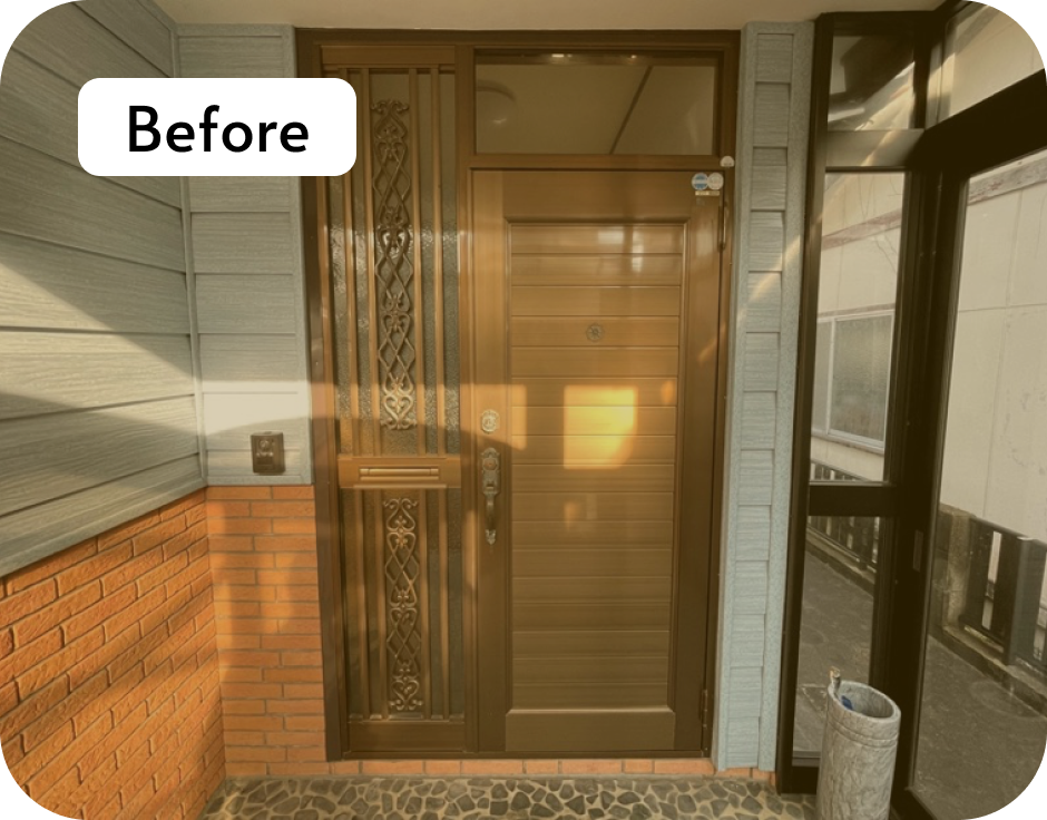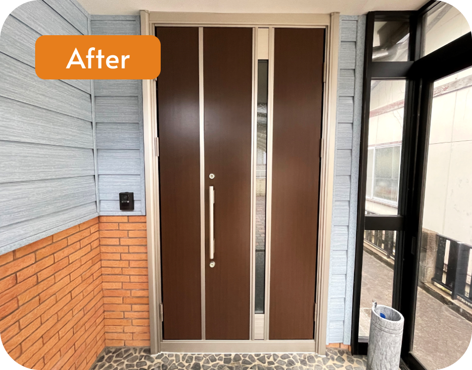 窓がある高さまでの玄関扉に取り替えたことで眩しさの解消はもちろん、開放感のある玄関になりました。