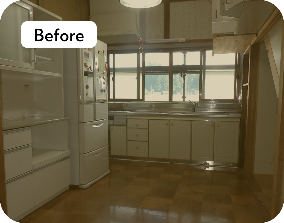 清潔感のある白で統一したキッチンは、明るく落ち着く空間になりました。内部建具も白で統一され、素敵な空間になりました。