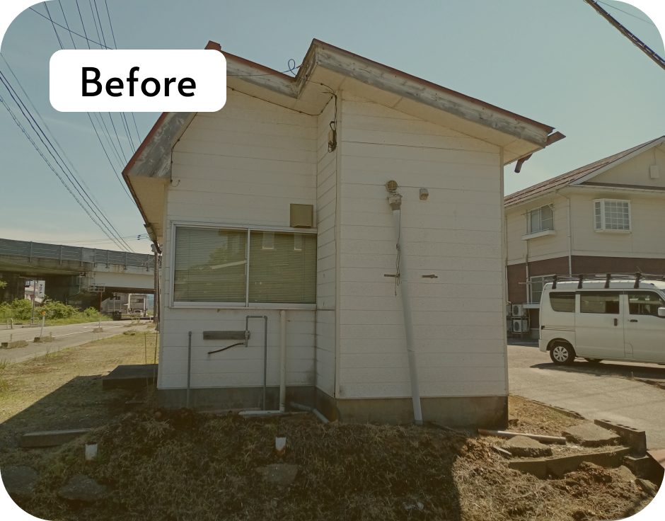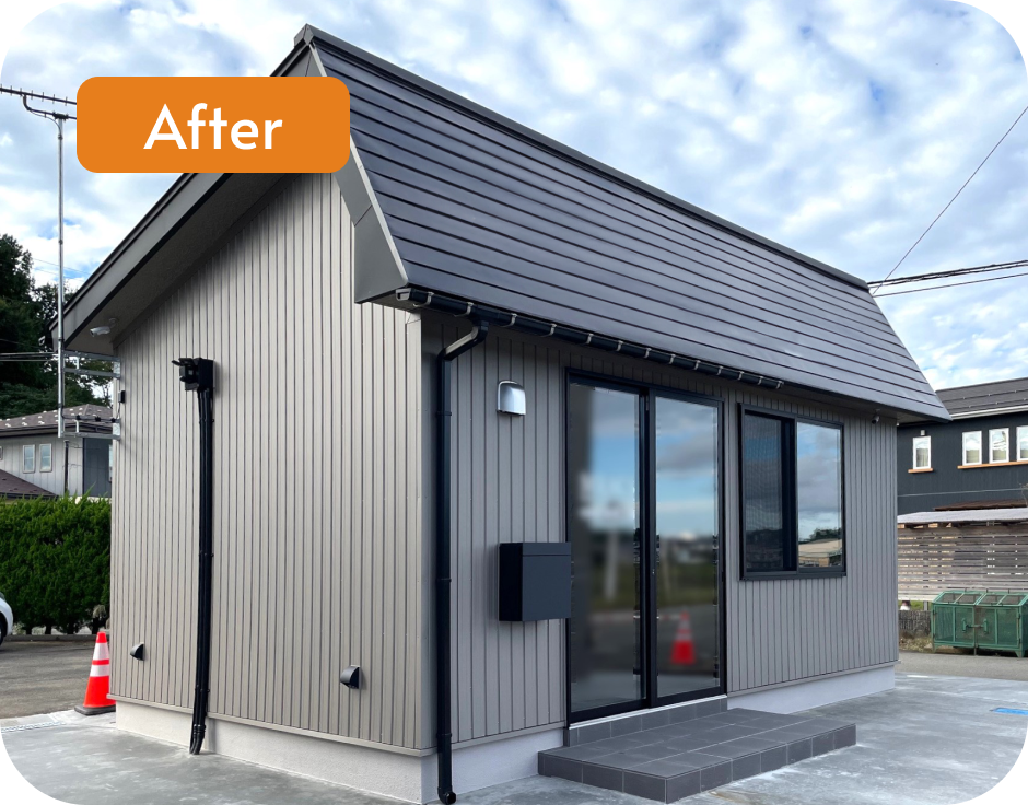 老朽化した務所を全面改修し、シンプルで清潔感ある空間に一新しました。内装はアクセントカラーとしてネイビーを取り入れ、落ち着きとスタイリッシュさをプラス。外壁も改修を行い、外観も新しい印象に生まれ変わっています。