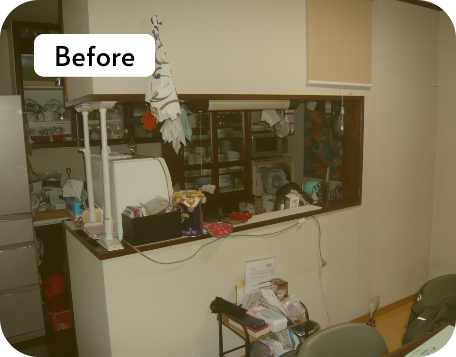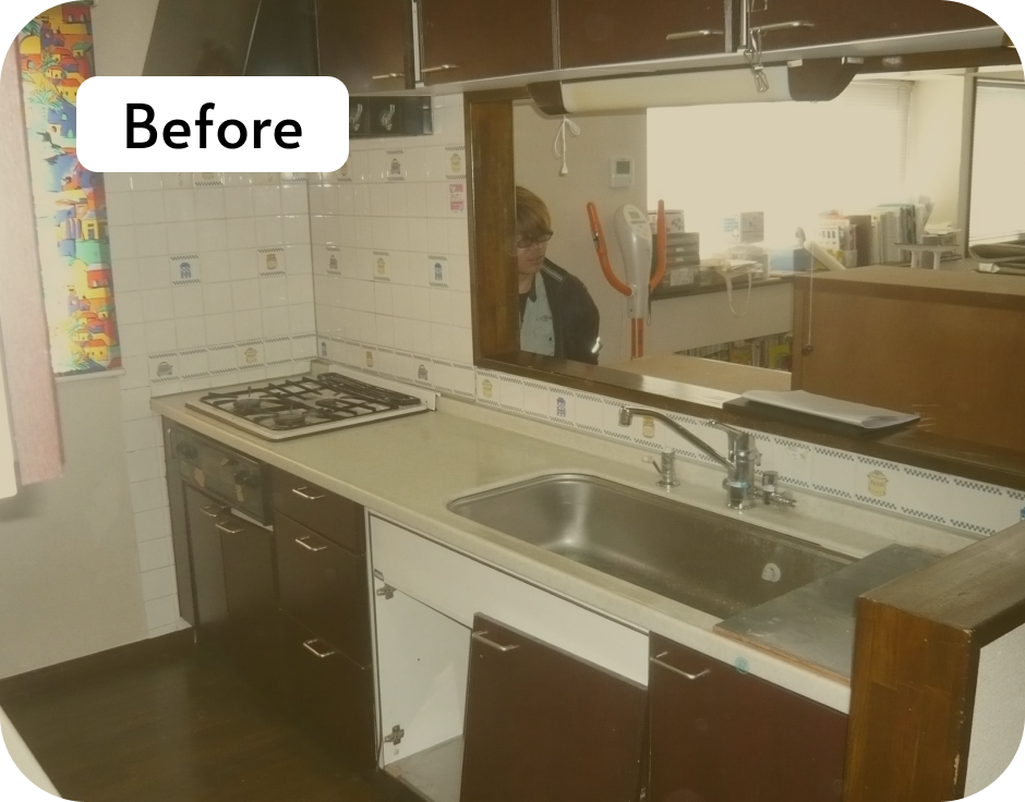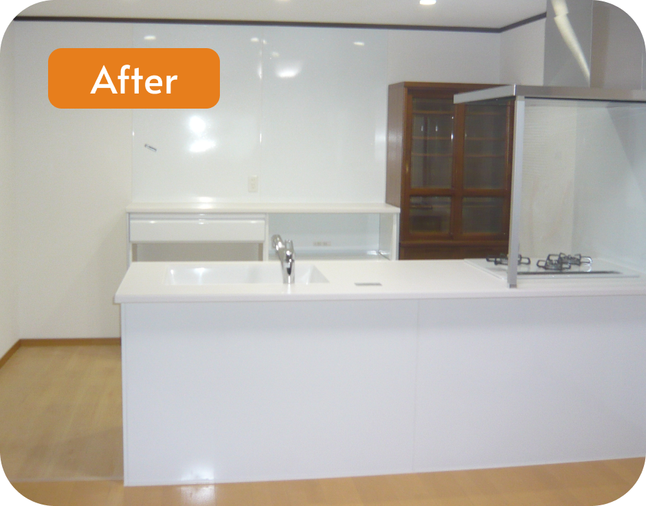 既存の壁を撤去し、キッチン全体が見渡せる開放的な空間へリフォームしました。